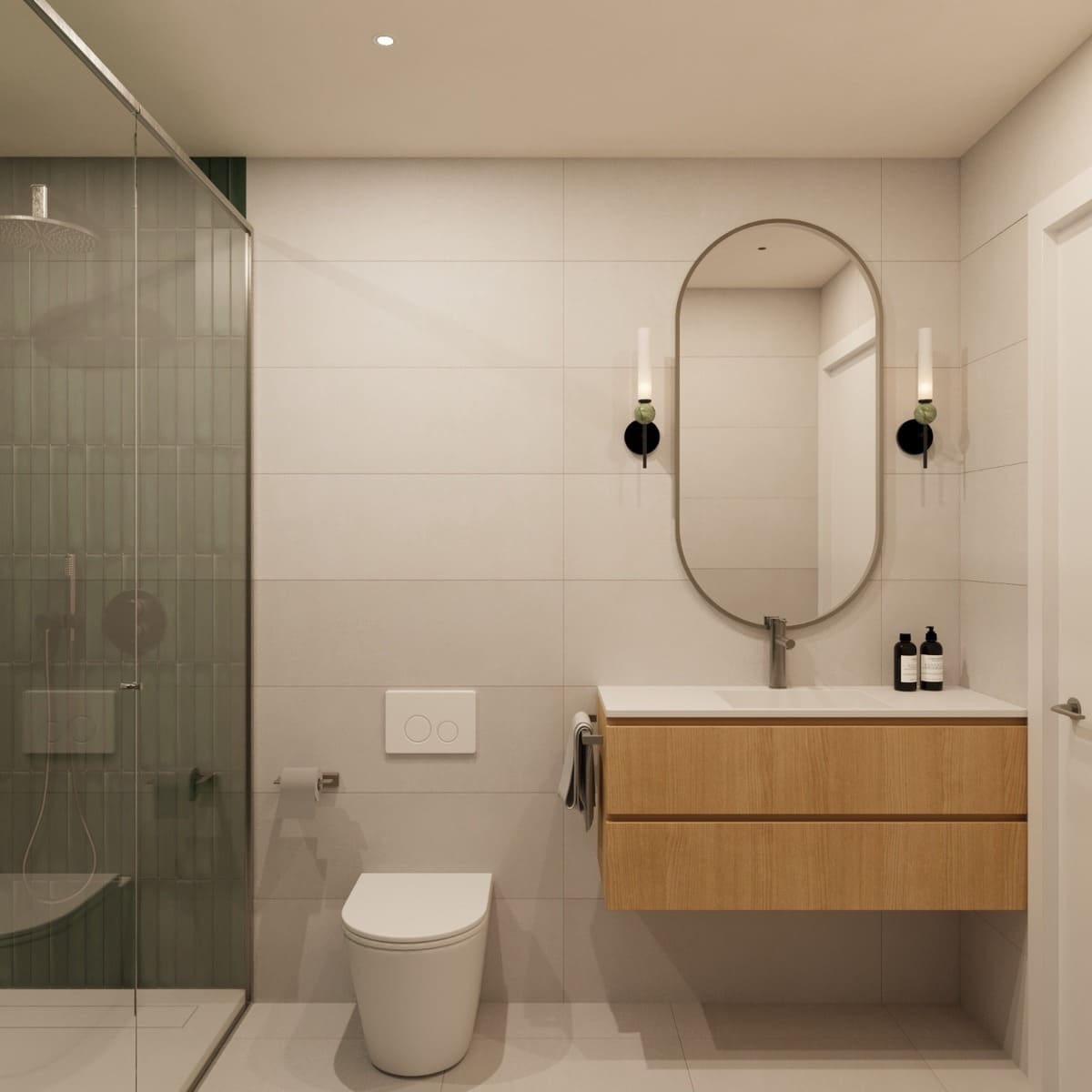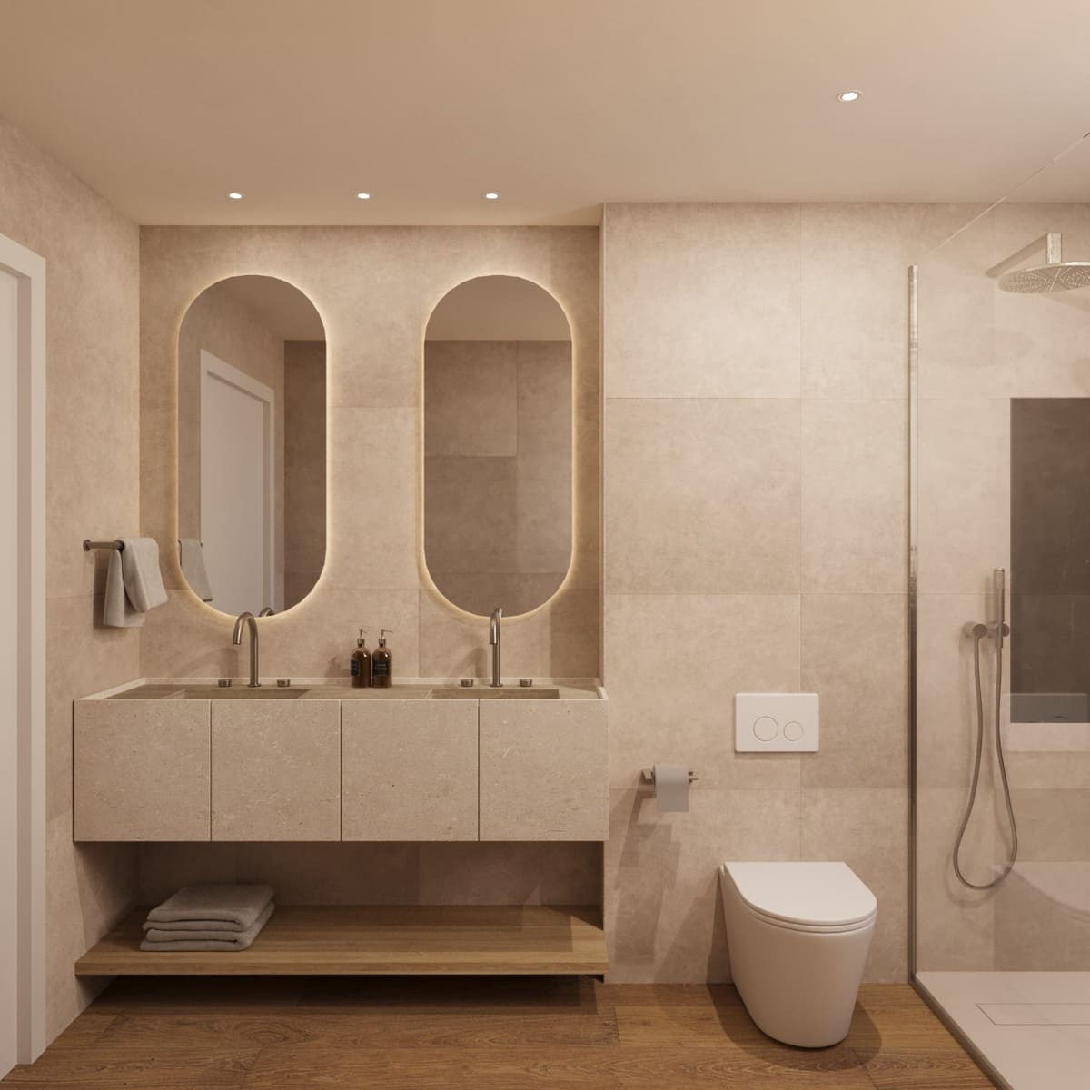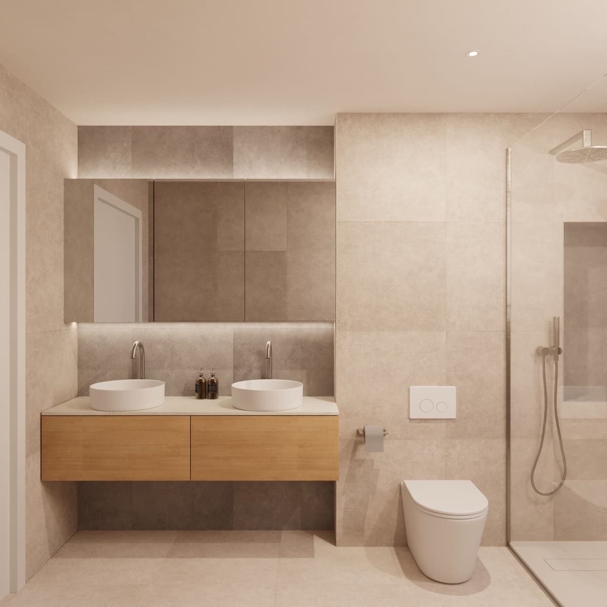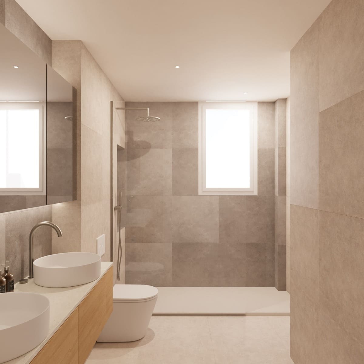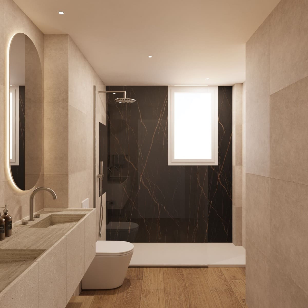 Trabajamos con materiales resistentes a la humedad y al uso intensivo: porcelánicos de alta calidad, grifería con certificación europea, mamparas templadas y mobiliario hidrófugo. La elección dependerá del presupuesto, estilo y necesidades del cliente.